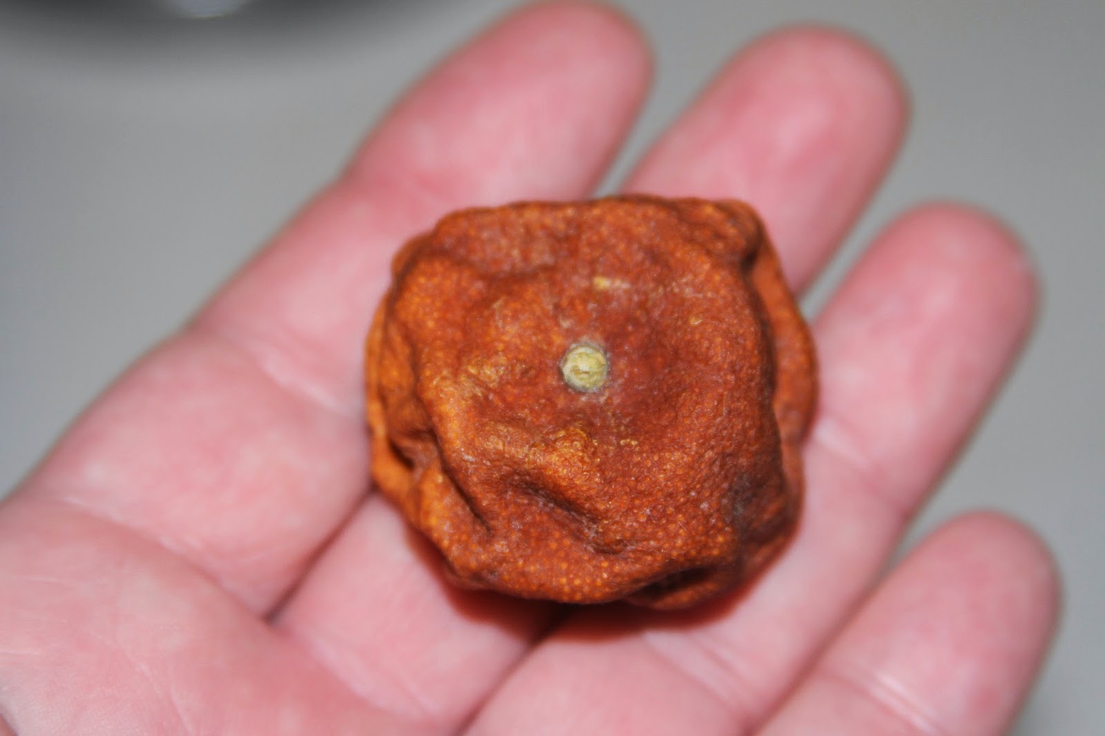 | What an tangerine your kids drops between the seats looks like after a couple of weeks |