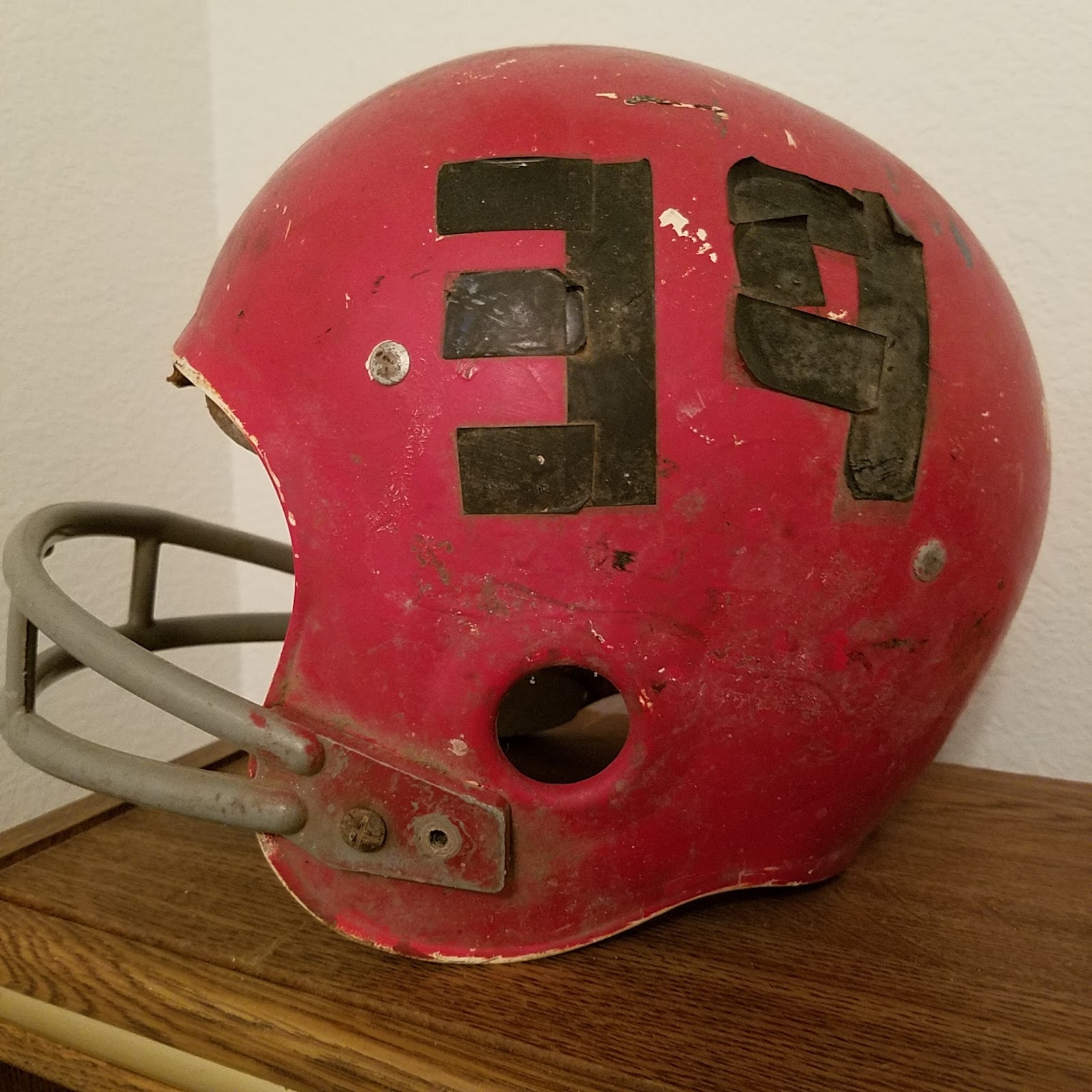 | I was on the National Guard Chiefs Pee Wee football team when I was a kid. We got to keep our helmets as they upgraded for the next season. |